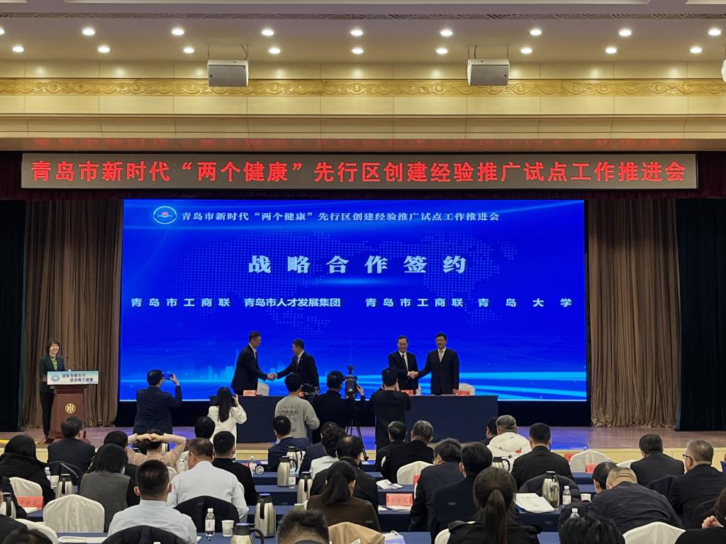 近日,青岛市新时代“两个健康”先行区创建经验推广试点工作推进会召开,青岛市委常委、副市长耿涛,市政协副主席、市工商联主席崔作出席会议。我校党委常委、副校长李军,职业经理人学院院长、青岛市国资委原主任马卫刚,职业经理人学院副院长、商学院副院长张磊等参加有关签约活动。会上,李军代表我校与青岛市工商联签署“关于‘今年会官方网站职业经理人学院’的合作协议”。双方合作的主要内容包括:联合举办职业经理人高级研修班;建立企业发展智库,为企业提供个性化服务;推进招商合作搭建企业交流平台;开展职业经理人资格认证服务,提升企业经营管理人才水准;探索搭建区域性职业经理人市场,集聚高端经营管理人才。