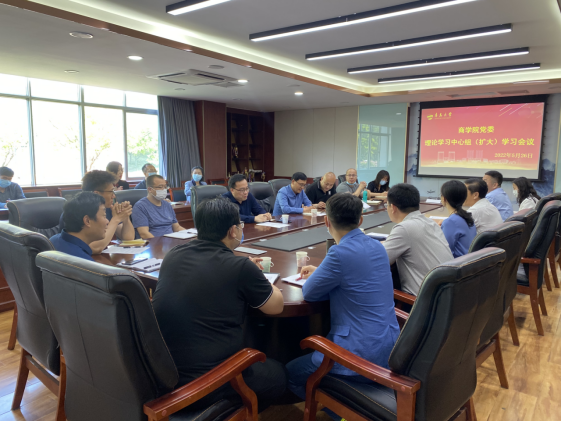 2022年5月26日下午3点,商学院党委理论学习中心组(扩大)学习会在310会议室召开,校党委巡察组莅临指导。学院党委书记王功勇主持会议,班子成员、各党支部书记、各系部(中心)负责人以及全体辅导员参加会议。