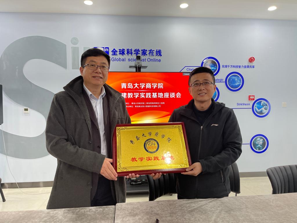 2021年3月23日,商学院党委副书记于文、学工办主任李鹏、副主任金铧和工商管理系辅导员马玮一行走访了青岛就业街大数据科技有限公司并签署共建协议。