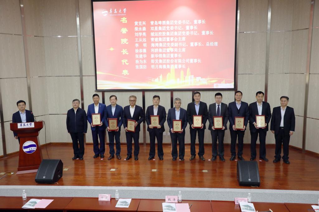 海尔集团董事局副主席、总裁周云杰,青岛啤酒集团党委书记、董事长黄克兴,双星集团党委书记、董事长柴永森,城运控股集团党委书记、董事长刘学亮,青岛银行党委书记、董事长郭少泉,青建集团董事会主席王从远,海湾集团董事长、总经理李明,利群集团董事局主席徐恭藻,新华锦集团董事长张建华,即发集团股份有限公司董事长杨为东,明月海藻集团董事长张国防,赛轮集团董事长袁仲雪等12位岛城知名企业家获邀担任青岛市企业家学院名誉院长。