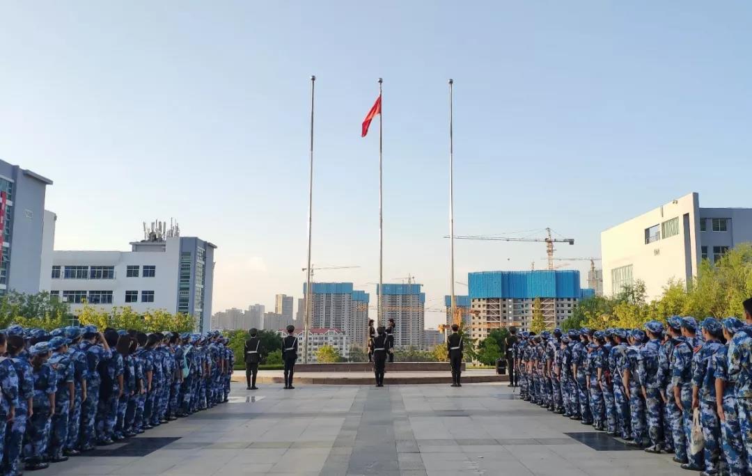 2019级新生们正值军训期间,每一位军训的同学的军训肩章都是国旗鲜艳的红色,是烈士们的鲜血染成的颜色,我们将它挂在肩头,就意味着我们把责任已经担在肩头,从此振兴中华就有每一位同学的一份责任。