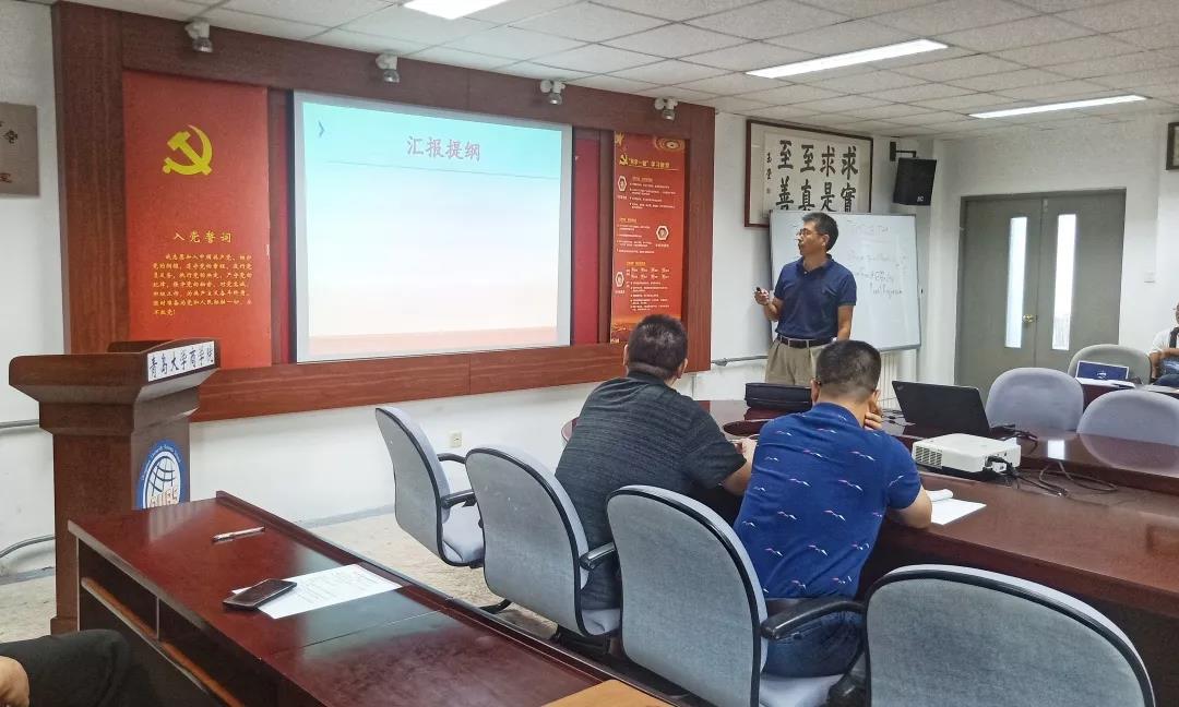 张桂涛主任进行了管理科学与工程系上半年工作情况汇报。张桂涛主任对管理科学与工程系的基本情况和考核指标完成情况进行了分析,汇报了党建工作与其他工作的完成情况,最后提出了下一步计划与建议。