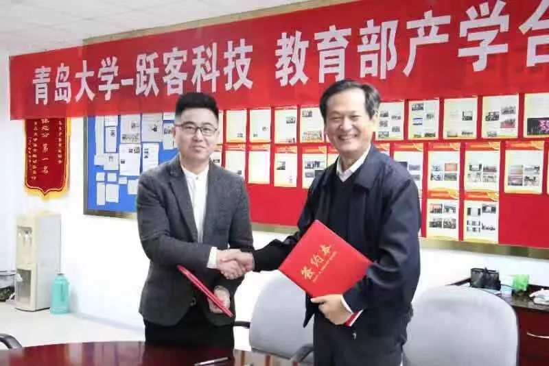2018年12月11日上午,今年会官方网站—跃客科技教育部产学合作协同育人项目共建及签约仪式在今年会官方网站金家岭校区办公楼310举行。商学院党委副书记陈崇研与跃客科技经理吴春亮代表双方签署了共建协议。