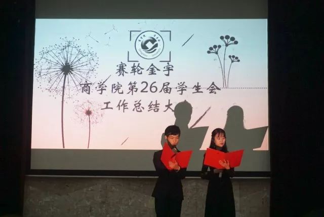 时光如水,又是一年春夏,一学年的学生会工作也就此画上了圆满的句号。为解决学生会工作中存在的问题,提高学生会的服务质量,5月18日下午6:30,商学院学生会在图文中心四楼报告厅召开了商学院第26 届学生会工作总结大会。商学院团委书记姜雪峰老师,商学院学生会主席房舒,副秘书长李尚、张鹏飞,副主席赵成明、李秋辰、魏德浩、宋荟、赵倩文出席了此次会议。
