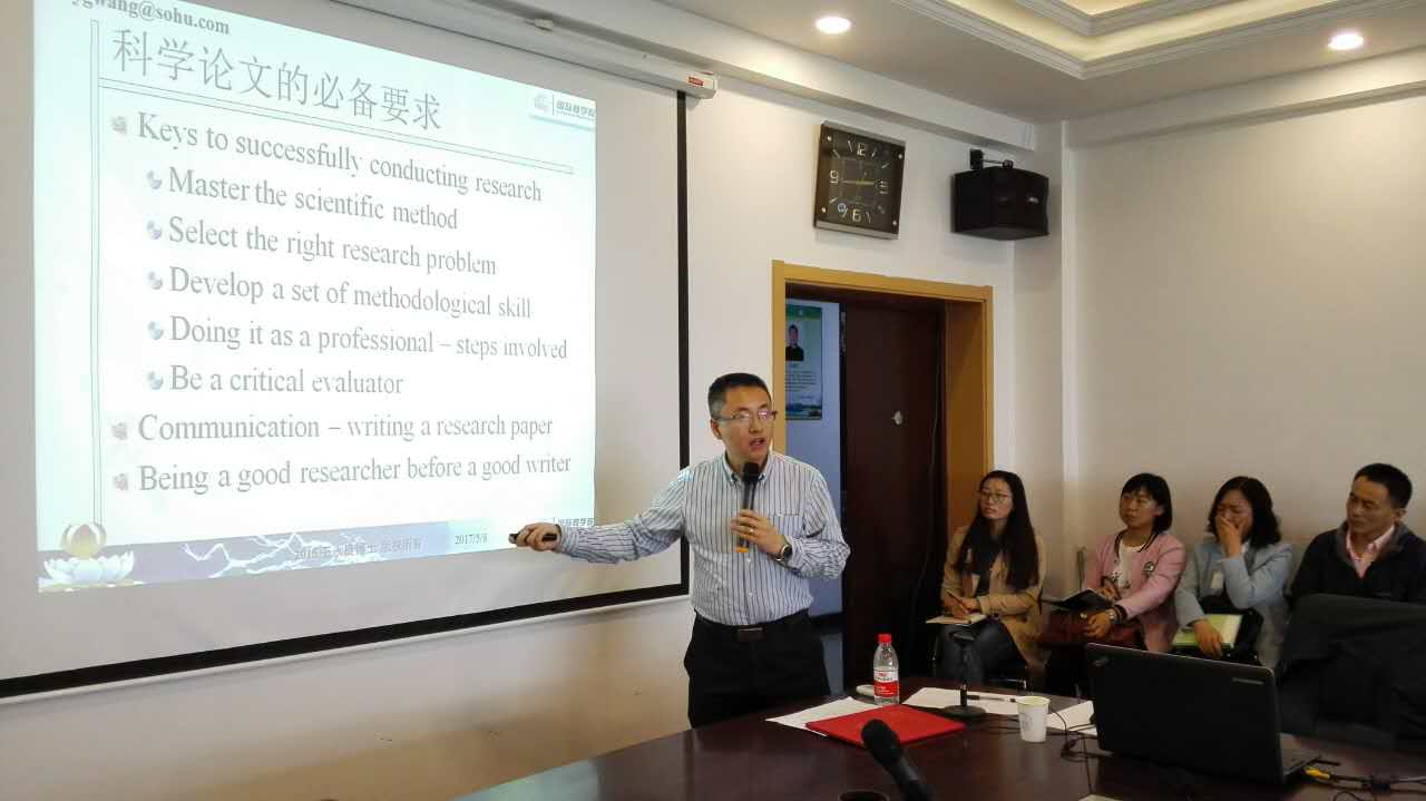 讲座中,王教授首先介绍了科学论文的必备要素,阐述什么是理论,理论中存在哪些关系,并提出了理论的三个原则——普适、准确、简约。接着王教授通过讲述自己写论文和发表论文的经历,来介绍如何寻找研究问题以及研究创意。之后,王教授介绍了在论文写作过程中引言的重要性以及论文结论的撰写方法。最后,王教授以自己的论文举例介绍论文发表过程中的注意事项,并建议在撰写论文的过程中要学会对话,找到论文的“卖点”。交流环节,王教授针对性的解答了听众提出的问题。王教授讲座内容丰富深刻,语言风趣幽默,博得听众阵阵掌声。