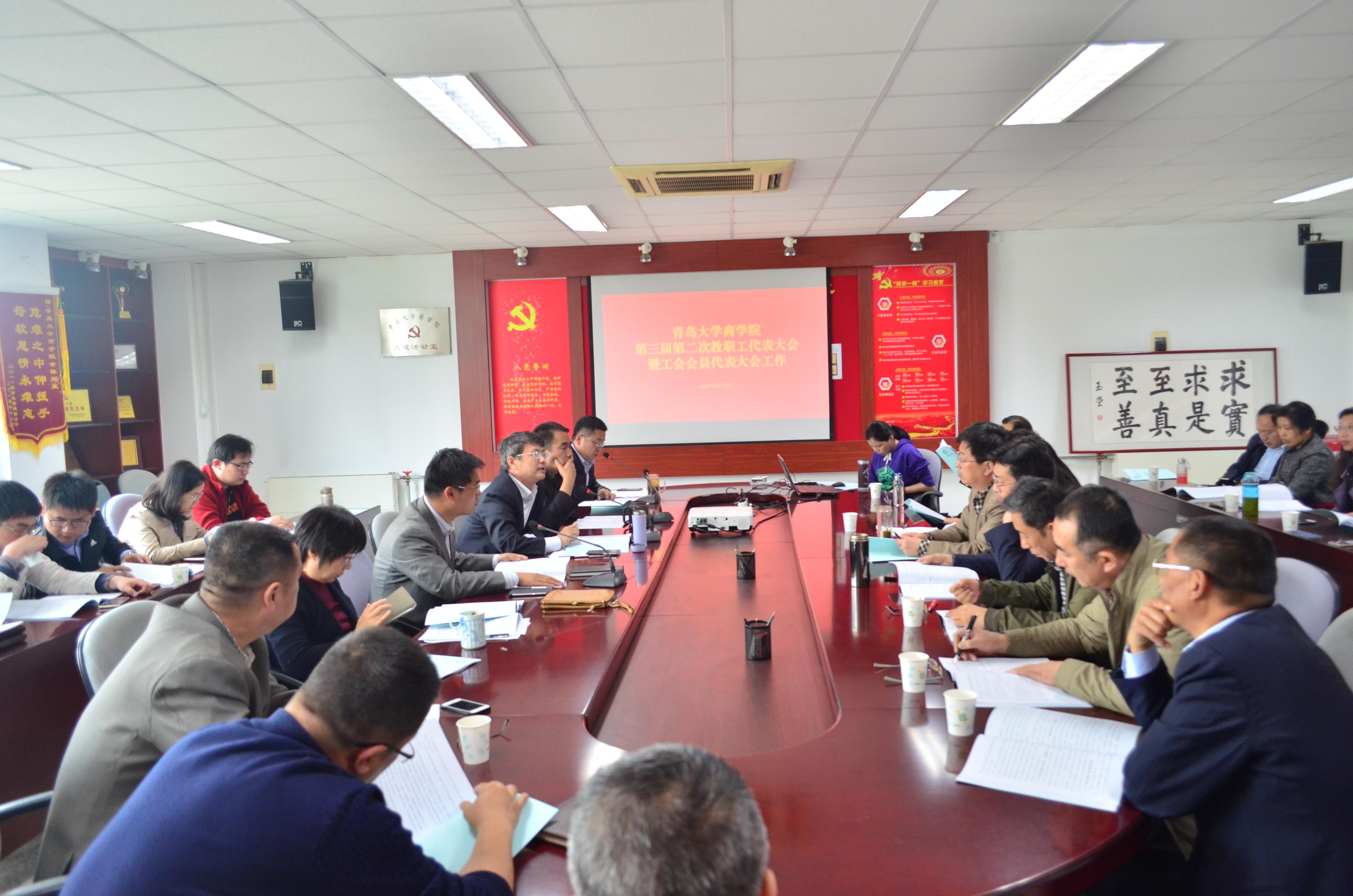 2017年4月21日下午2:00,商学院工会委员会在金家岭校区西院办公楼310室召开商学院三届二次“双代会”,来自学院各部门、各教学系、中心的60名代表参加了会议。
