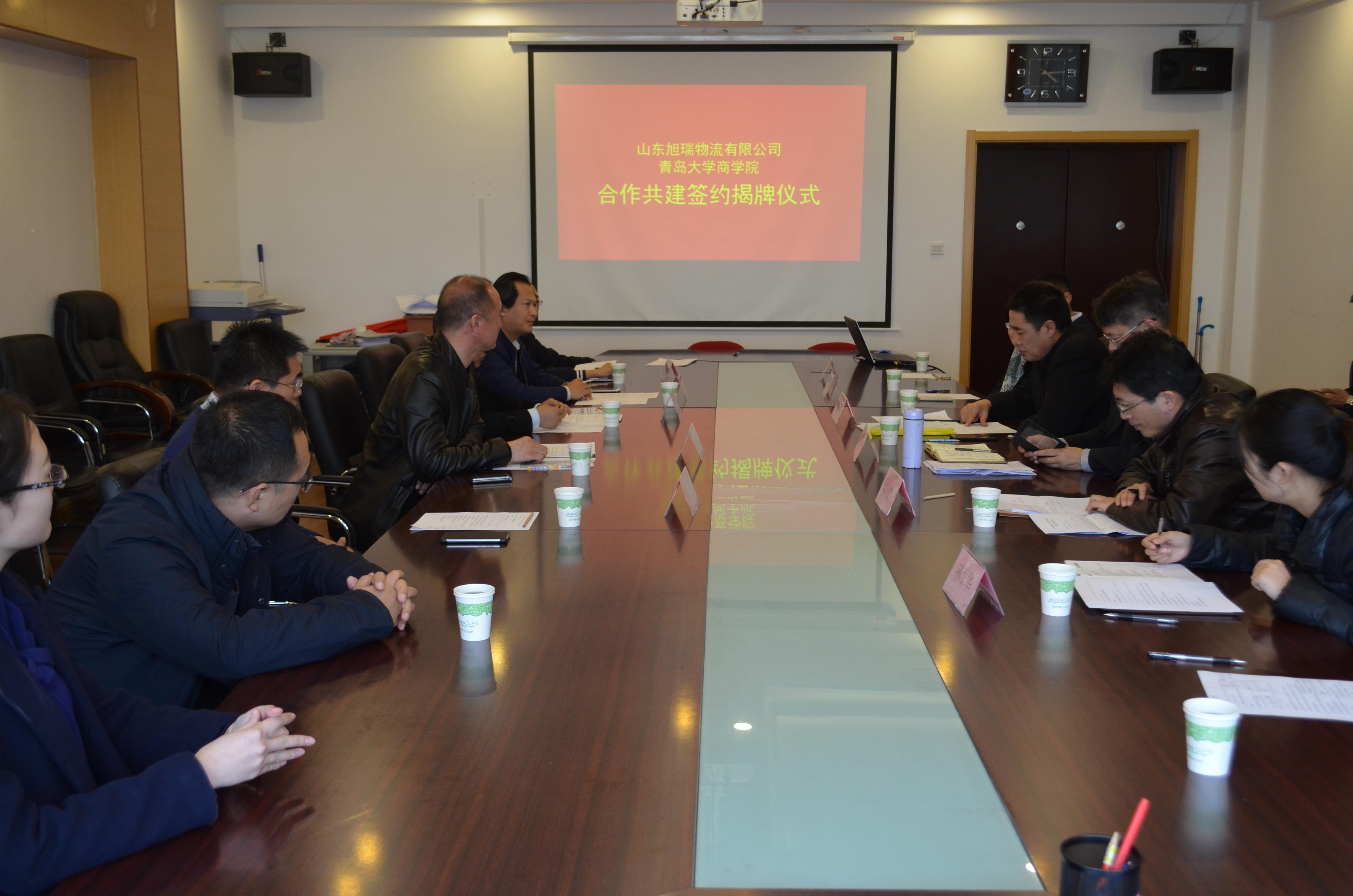 3月3日下午2点半,今年会官方网站与山东旭瑞物流合作共建签约揭牌仪式在金家岭校区办公楼商学院四楼会议室举行。山东旭瑞物流有限公司董事长徐建春、商学院党委书记管永建、院长胡劲松、学院职能部门、部分师生代表参加共建签约活动。