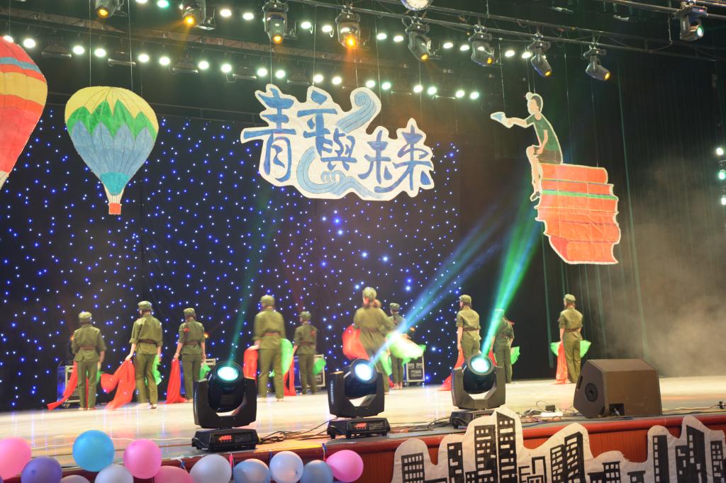 晚会由舞蹈《映山红》正式拉开了序幕,绿的军装,红的映山红,全场荡漾着青春的气息。本次晚会共有三个篇章:醒-日月换新篇,盎-恰同学少年篇,惜-青春不再见篇。每一篇章分别由一个朗诵引领,慷慨激昂的《五四,永不熄》,青春活泼的《聆听青年》,感动人心的《匆匆那年》。诗朗诵《五四,永不熄》,再现了爱国青年为反对帝国主义游街示威强寇,震撼历史画面,爱国之情表现得淋漓尽致。