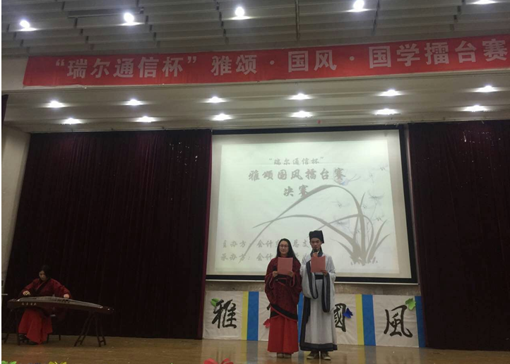 12月3日晚,会计学系第二届“瑞尔通信杯”雅颂国风擂台赛决赛在东校区图文中心四楼成功举办。此次擂台赛由王宁宁学姐、姜亚坤学长担任主持人,莅临现场的各位嘉宾评委有商学院会计学系团总支书记陈鑫老师、会计学系辅导员李晓涵老师、会计学系学生会主席陈昭旭学长以及公共事业管理学院学生会主席王洪磊学长。