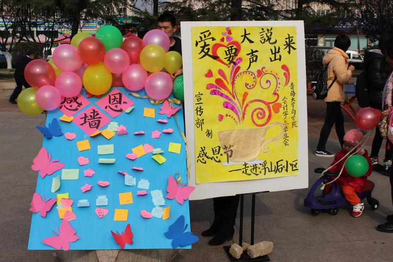 由商学院会计学系学生会主办的《把爱大声说出来》感恩节活动于2015年11月29号在浮山后小区举办。