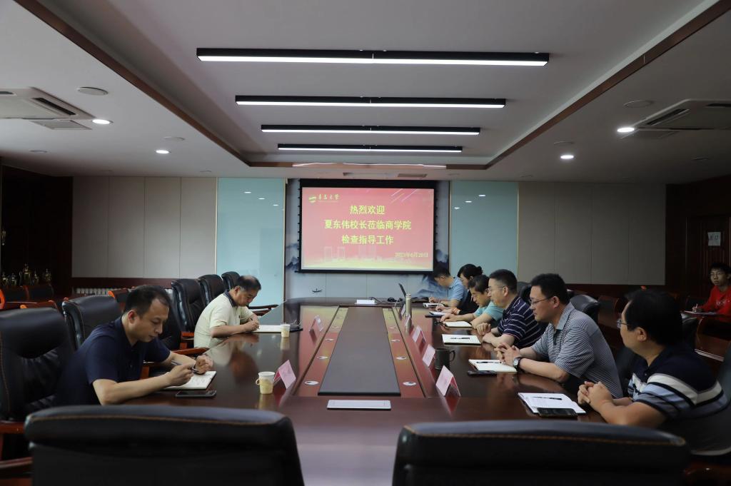 6月20日下午14:30,夏东伟校长赴商学院调研,商学院全体班子成员陪同调研并参与座谈。