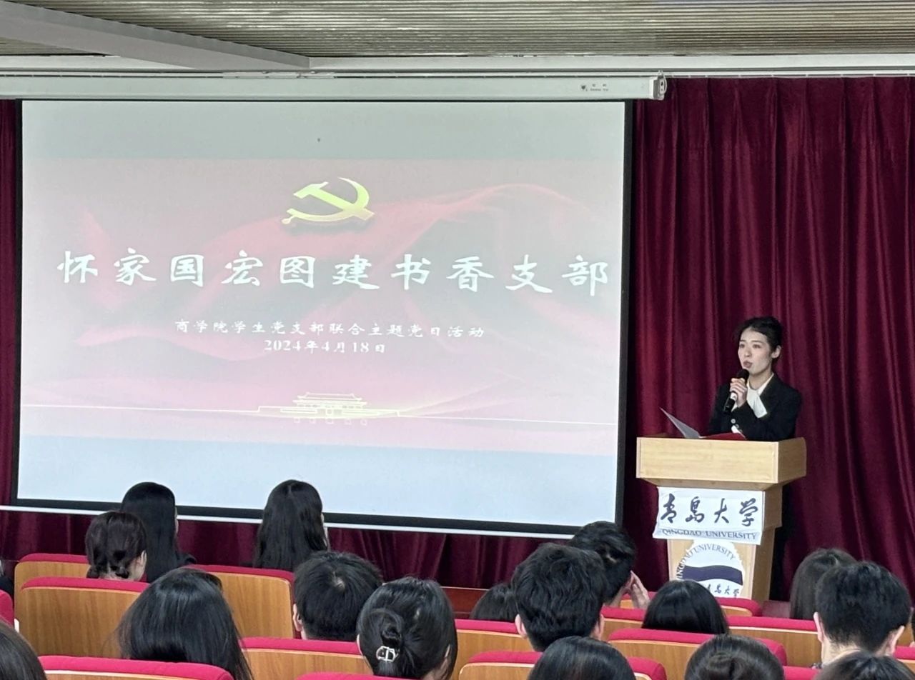 商学院学生党支部联合主题党日第二期“怀家国宏图,建书香支部”于4月18日在图文三楼报告厅顺利开展,本次活动由商学院学生第二党支部轮值承办,商学院书心协会协办。商学院党委副书记尼梅颉参会并做总结发言,各学生党支部书记、学生党员以及入党积极分子参加了主题党日活动。