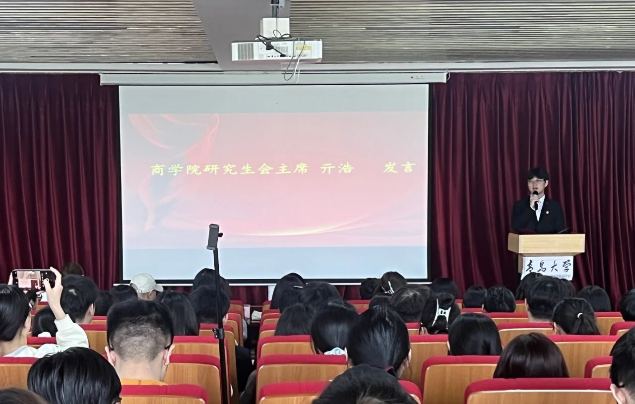 书海泛舟寻智慧,斗志昂扬向未来。商学院研究生会主席亓浩号召大家作为新时代青年,要以书为帆,以学为桨,乘风破浪,鼓励让大家在知识中汲取力量,斗志昂扬,以饱满的热情和坚定的决心,投身到学习和实践中去,不断提升自己的综合素质和能力水平,为国家的繁荣富强贡献青春力量。
