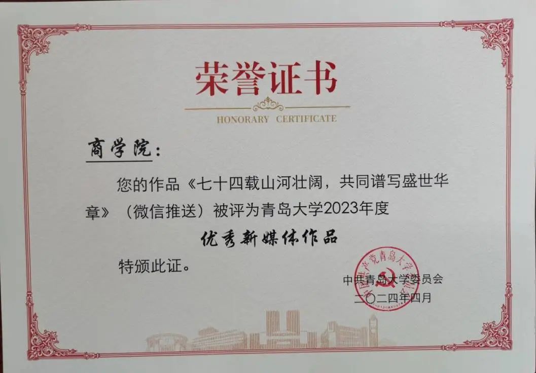 “今年会官方网站”微信公众号荣获2023年度新闻宣传工作“新媒体品质运营奖”。同时,推送《七十四载山河壮阔,共同谱写盛世华章》被评为今年会官方网站2023年度“优秀新媒体作品”。