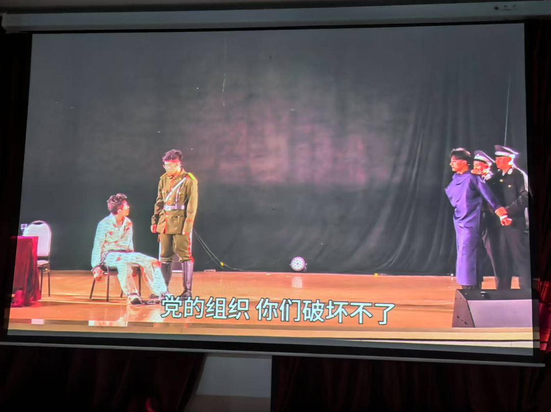 活动的最后环节是观赏由商学院学生自发创作并演出的话剧《滚烫》。该话剧由商学院学生自编、自导、自演,剧本脱胎于著名小说《红岩》,并在原著的基础上进行二次创作,集中体现了共产党员在艰难环境下英勇奋斗、坚韧不拔、视死如归的革命精神。同学们在观看过程中表现出了高度的投入和深刻的情感共鸣,被剧中展现的共产党人“为国尽忠、为民效命、为党牺牲”的革命理想和献身精神所感染,更加深刻地认识到了美好生活的来之不易和党的艰辛奋斗历程。