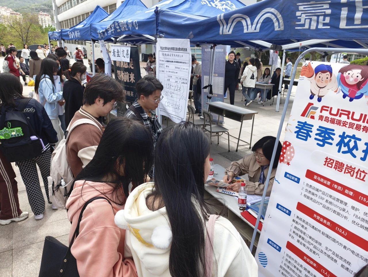 本次双选会吸引了金家岭校区500余名毕业生前来参会。招聘展位前人头攒动,翻看阅历的声音与HR的讲解声交织成一片,学生们自信展示自身优势与求职期望,就关心的问题深入咨询,现场氛围火热!