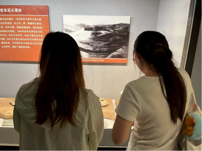 第三站来到青岛市博物馆。“古韵悠长”展区的东夷陶器、齐国刀币,展现先民智慧与青岛古代经济地位;“近代风云”展区的殖民时期文物与新中国建设规划图形成对比,诠释了“没有共产党就没有独立自主的新中国”。