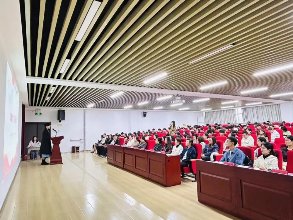 2025年10月30日下午,商学院学生党支部在金家岭校区图文中心三楼报告厅开展“智慧如炬照亮复兴路,红色铸魂砥砺新征程”联合主题党日活动,本次活动由商学院学生第五党支部承办,商学院党委副书记尼梅颉、商学院学生党支部书记、辅导员、学生党员与积极分子等200余人共同参加,通过微党课展示与交流,共同探讨一个对于学生党员至关重要的话题——如何在追求智育卓越的过程中,筑牢成长的根基,明确前进的方向。