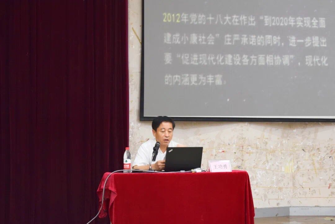 王功勇书记以中国近现代史的两个一百年为时间轴,以中国共产党百年辉煌和中国现代化为核心,用详实的数据,生动的历史画面,从历程、引领、主体、保障和本质五个方面阐述“世界眼光视域下的中国现代化”。