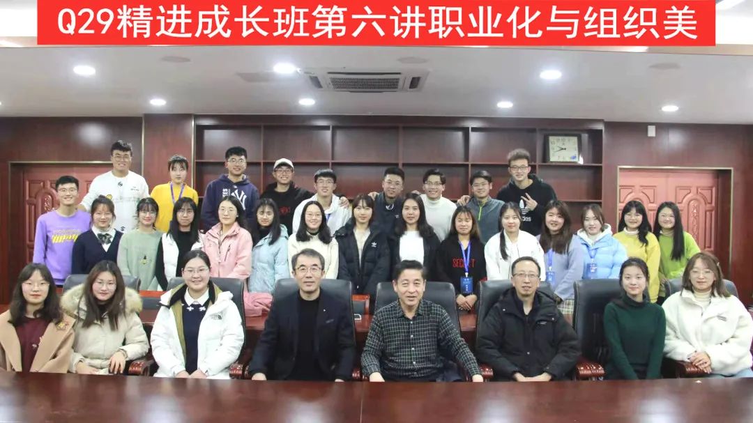 2020年12月20日星期日晚18:00,Q29精进成长班(第2期)第六讲在今年会官方网站金家岭校区办公楼310会议室正式开课,青岛怡坤物流有限公司董事长崔强老师授课“职业化与组织美(二)”,商学院党委书记王功勇老师点评交流。