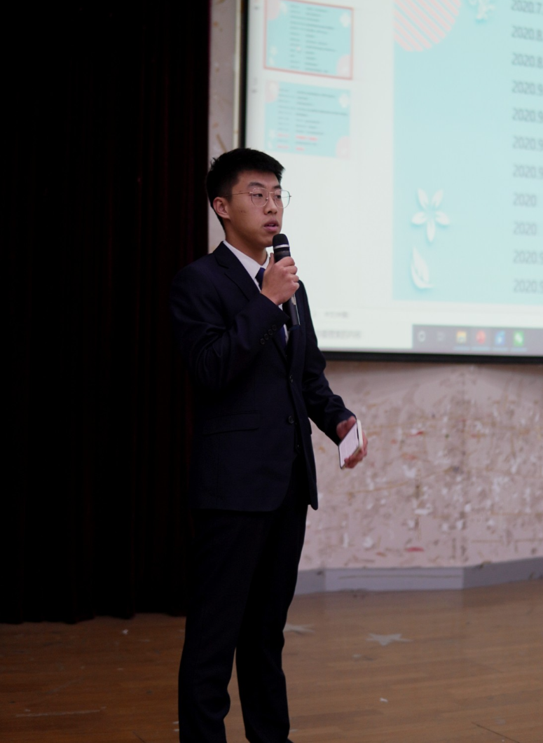 接下来是商学院学生会执行主席沈景欣学长发言。学长先是带我们回顾了这一年学生会的大大小小的成绩,让我们感受到真的是不知不觉中大家就一起齐心合力做成了这么多的事情。学长又对姜导、他一直以来并肩作战的朋友们以及学弟学妹们表示了感谢。他相信在大家的不懈努力下,商学院学生会一定会越来越好的。