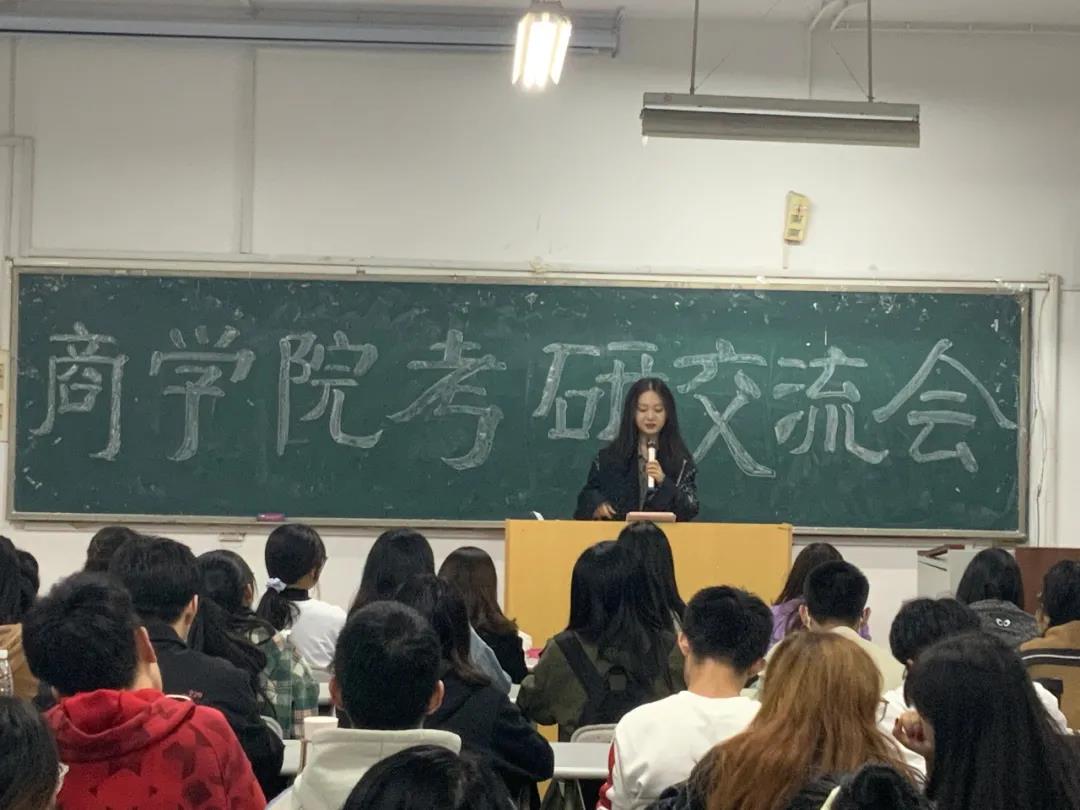 10月27日下午6:30,由商学院研究生会举办的考研交流会在西院二号实验楼208教室如期进行。