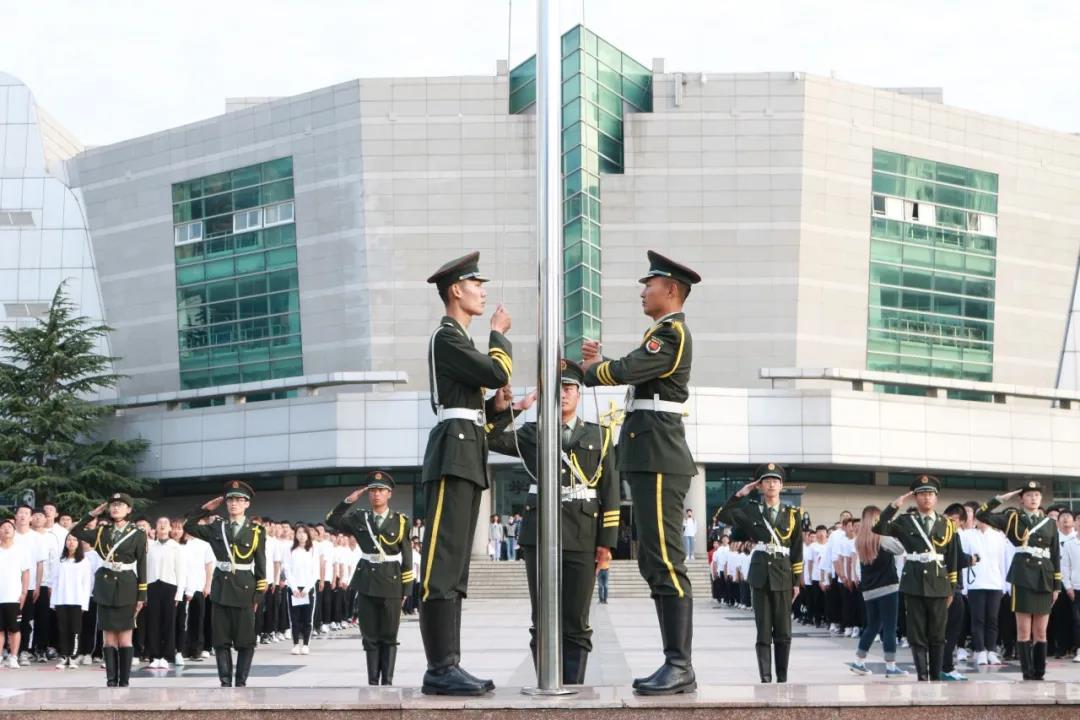 为弘扬爱国主义精神,增强民族自豪感,10月1日早上7:00,在举国上下欢度国庆之际,“庆祝中华人民共和国成立71周年”升国旗仪式在图文中心前广场举行。驻金家岭校区各学院学生工作分管副书记、各学院团委书记、2020级新生辅导员、2020级学生1400余人参与此次升旗仪式。