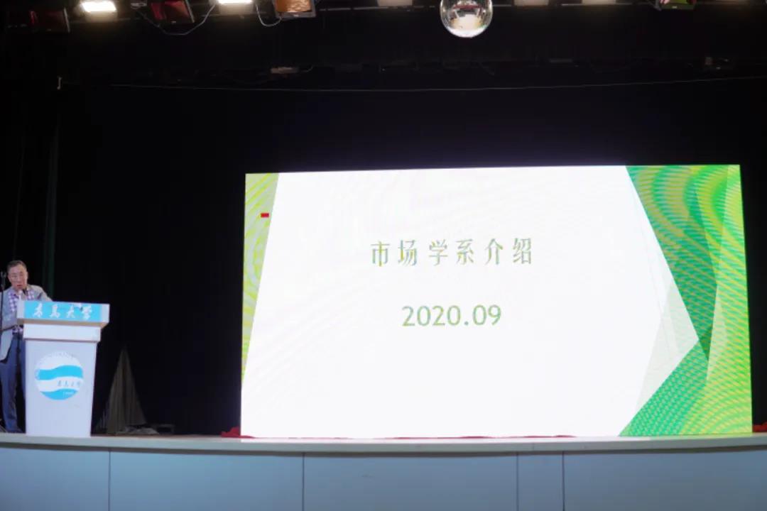 国际商务系翟晓东老师介绍了专业的学科历史及专业介绍,并展示了国际商务系的专业课程、师资力量和科研产出,并鼓励新生努力学习,提高本系的继续深造率。
