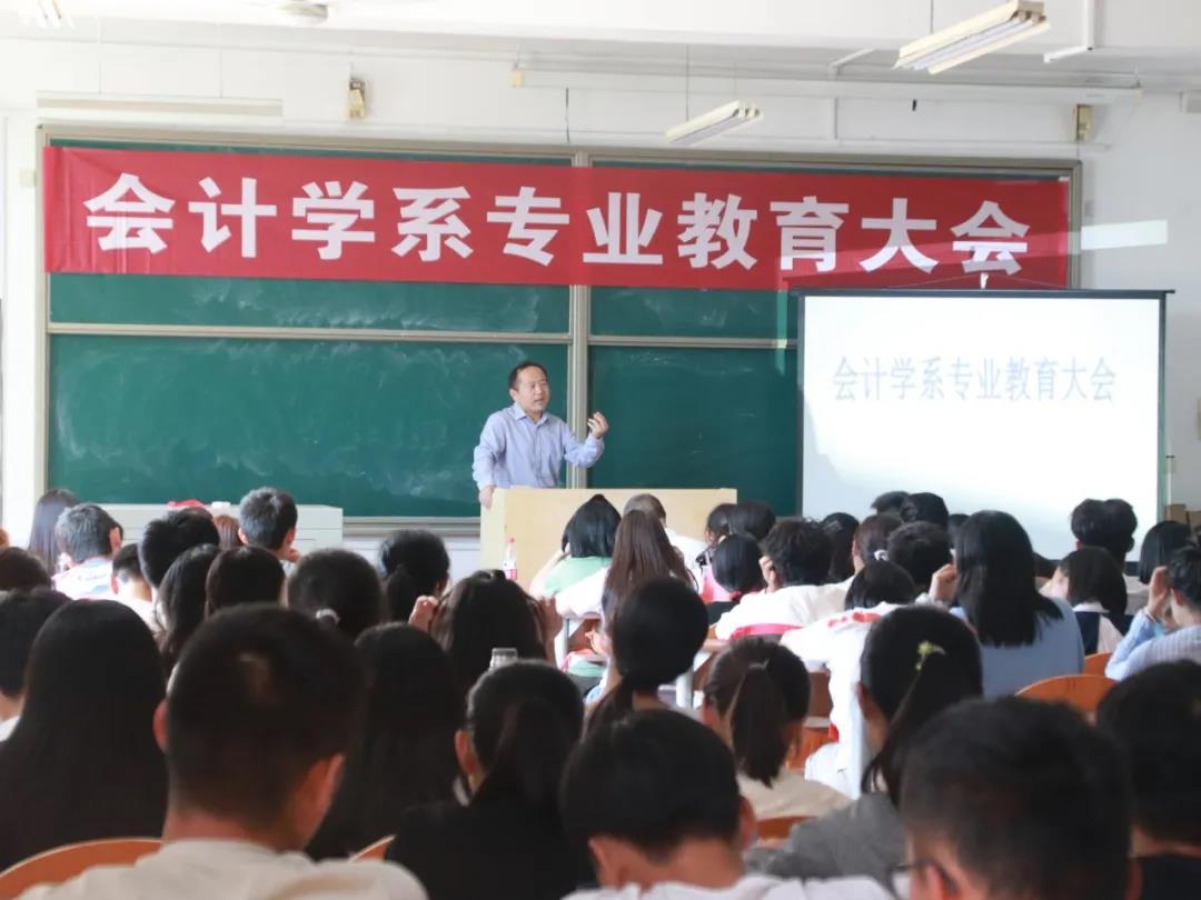 会计学系主任范英杰老师、副主任鲍在山和康进军三位老师介绍了专业设置及培养目标,展示了本专业的师资力量和科研成果,同时也展示了考研率和就业率,鼓励大家积极考研,继续深造。