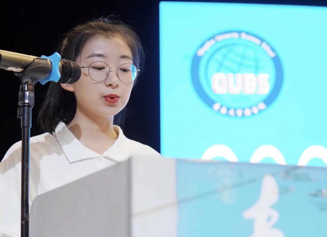 18级国际商务学生代表董世鑫学姐为新生做了精彩的演讲,分享了自己的大学生活心得体会:第一,提前规划自己的大学生活。在大学生活开始前,对自己有一个清醒的认知,将会帮助自己少走许多弯路。第二,把重心放在学业上。大学生的本职工作是学习,良好的学习基础、扎实的专业知识将会有利于四年后的考研备考工作,帮助我们更好的发展自己。第三,内心要有荣誉感。在商学院的四年会有无数次温暖、无数次动容,希望各位学弟学妹可以好好培养和珍惜荣誉感、认同感、归属感,成为一名优秀的商院人。最后,祝愿新生在大学四年可以收获自己真正想要收获的,成为自己想成为的,达成自己一直所梦想的!