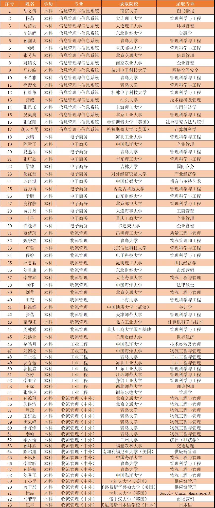 商学院2020届本科毕业生考研深造再创佳绩