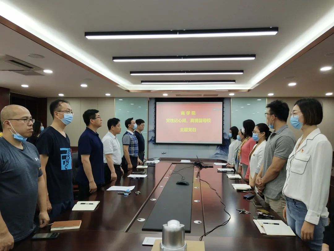 6月12日上午9:30,商学院在金家岭校区办公楼310会议室举行“党性记心间,真情留母校”主题党日活动。会议由市场学系辅导员房征岩老师主持,商学院党委书记王功勇、副书记于文、商学院相关职能部门负责老师、全体辅导员参加现场活动,全体学生党员、入党积极分子线上参加了活动。