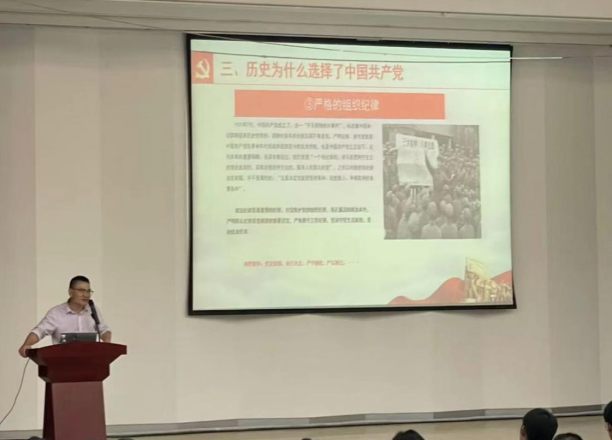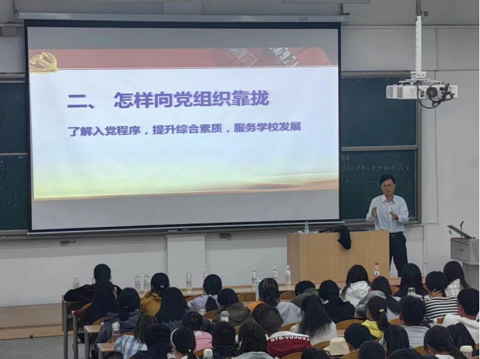 魏强老师向大家提出了入党的标准——思想觉悟崇高、品德品质高尚、学业工作优秀以及群众威信良好,向同学们介绍了从递交入党申请书到成为入党积极分子、党员发展对象,最终加入党组织的入党流程。他鼓励新生要积极向党组织靠拢,不断成长为更加优秀的自己。