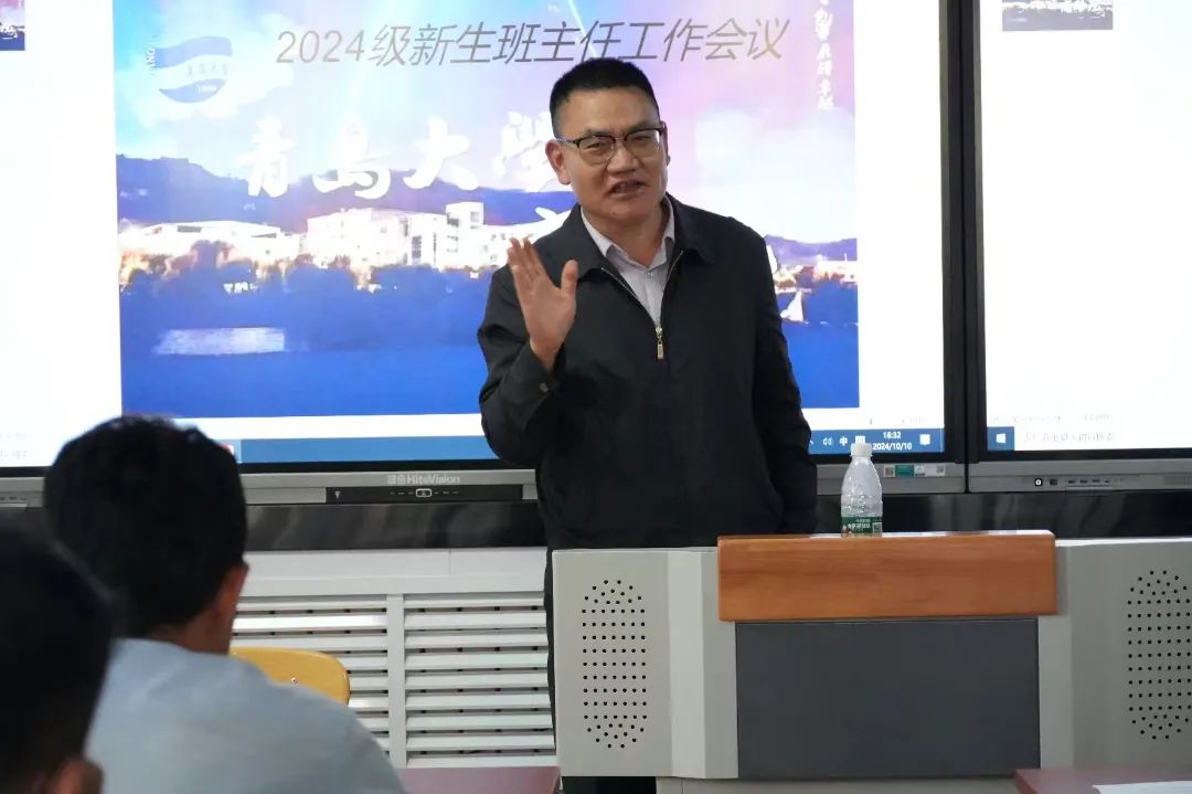 商学院组织员魏强,作为2024级新生班主任代表表达了对未来班主任工作的规划。魏强着重强调要抓好学生学习,提建议,讲方法,关注学生的个体差异,与辅导员做好配合,创造性地开展班级管理工作。