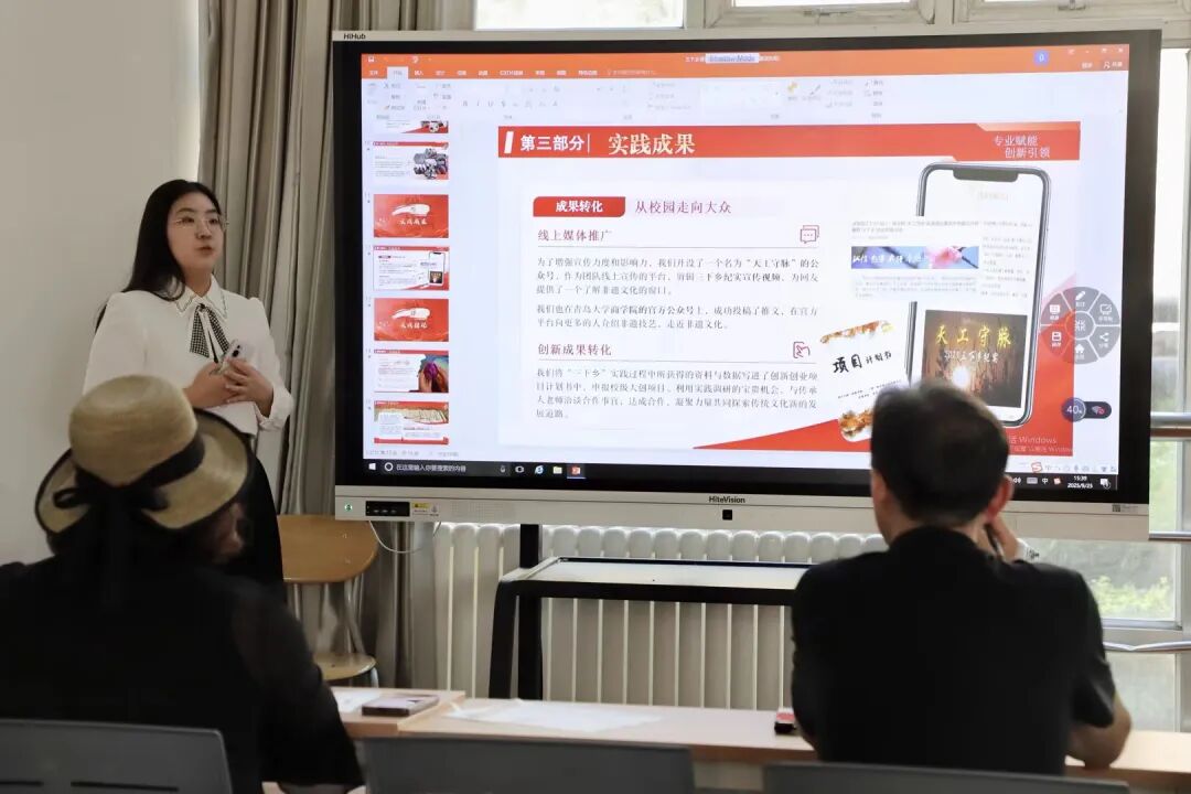 张严栩带领的“天工守脉”实践团聚焦青岛非遗文化,在实践中通过实地调研、亲身体验,深入了解了伤寒派中医、盖氏女红等技艺,并细致挖掘背后的传承故事。答辩中展现的实践成果,充分体现了团队为非遗传承与发展注入青春力量的担当。
