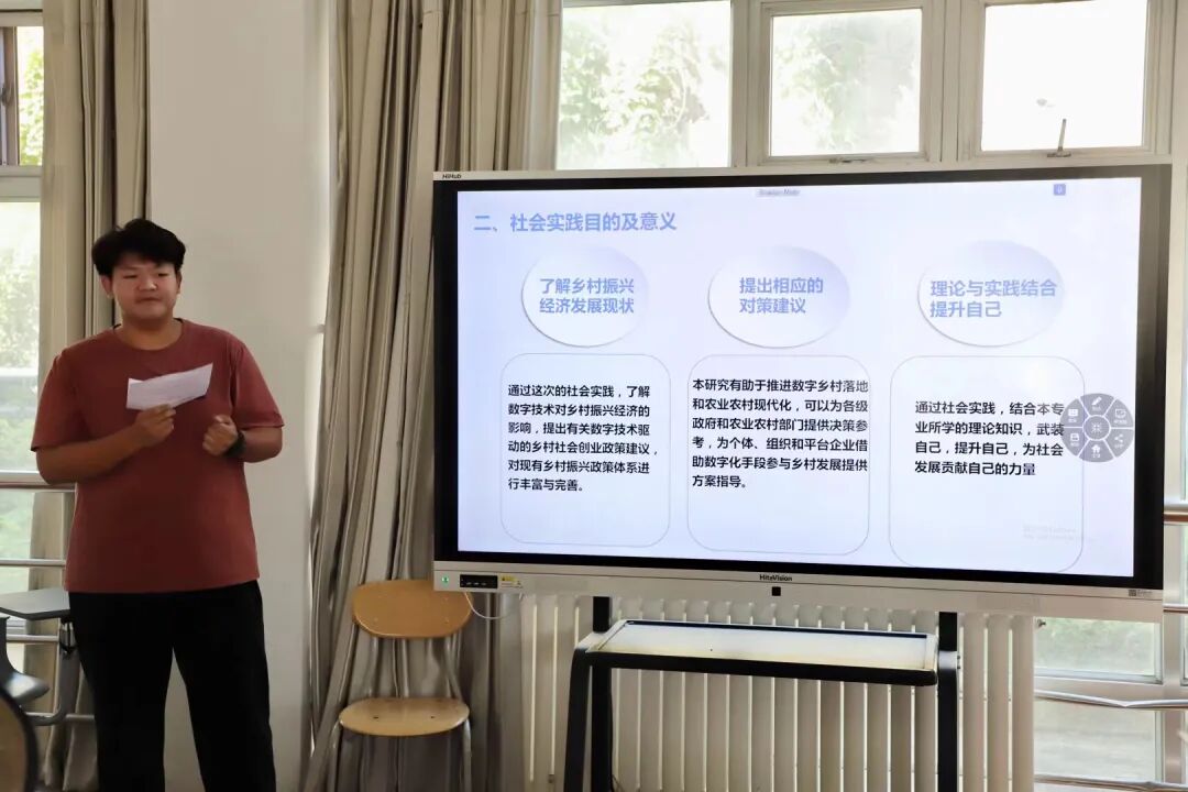 周俊妤带领的“励志青春”乡村振兴实践团聚焦数字技术与乡村振兴,在答辩中分享了参观青岛市乡村产业发展等经历,不仅清晰地呈现出数字技术赋能乡村的正向作用,也直面数字基础设施覆盖不均、数字治理体系不成熟等现实问题。后续,团队将持续关注数字技术与乡村振兴的深度融合,为推动乡村数字化发展、助力乡村振兴战略实施贡献青春智慧与力量。