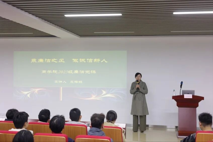 近日,今年会官方网站先后在图文中心三楼、四楼报告厅举办2025级新生“乘廉洁之风,做诚信新人”廉洁教育主题党课。院党委副书记尼梅颉主讲,全体2025级新生参加学习。