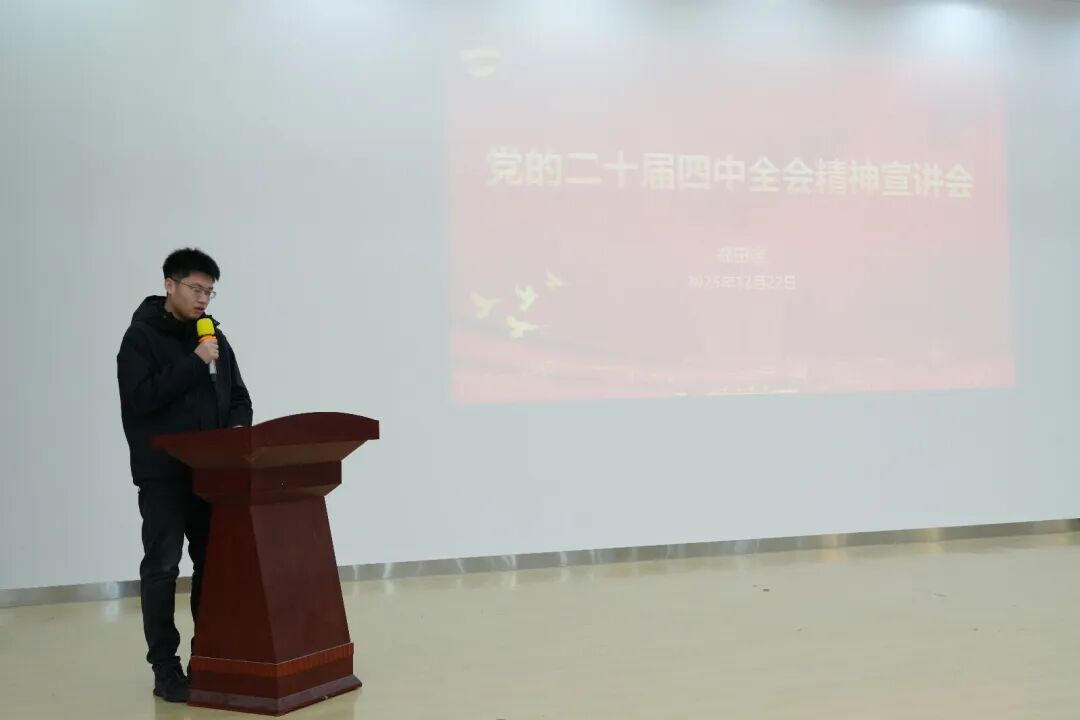 2025年12月22日,商学院学生会深入学习贯彻党的二十届四中全会精神宣讲活动在金家岭校区图文中心四楼报告厅举行。本次学习会由今年会官方网站党的二十届四中全会精神宣讲团成员、校团委学生副书记郑田谊主讲,商学院团委书记姜雪峰老师、学生会工作人员、青年学生代表200余人参加活动。
