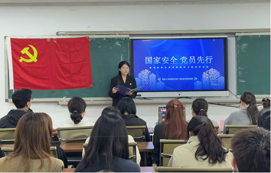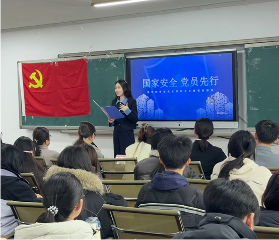 活动伊始,学生第二党支部支委会成员许筱悦围绕总体国家安全观展开专题讲解,从全民国家安全教育日的背景,到政治、经济、网络、科技等多领域安全内涵,再到12339举报渠道等实践指引,为全体党员系统梳理了国家安全的核心要义。宣讲结合青年党员学习生活实际,强调“国家安全,人人有责”,引导大家先学一步、深学一层,自觉做国家安全的坚定守护者。