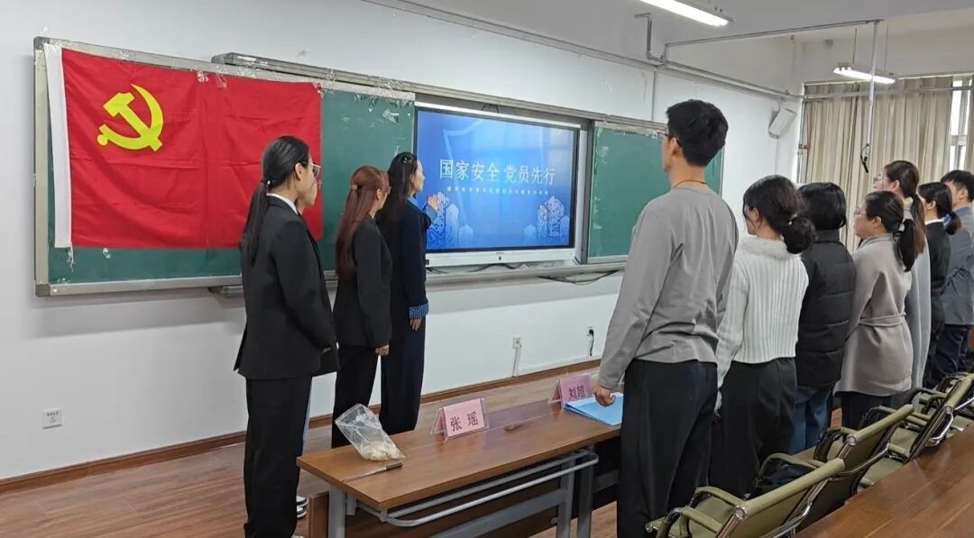 全体党员起立,面向党旗重温入党誓词。“我志愿加入中国共产党……”铮铮誓词铿锵有力,既是对初心的回望,更是对维护国家安全的庄严承诺。大家纷纷表示,将以誓词为镜,永葆党员本色,在维护国家安全上走在前、作表率,以青春之力守护山河无恙。