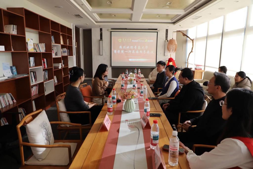 12月30日,商学院党委副书记尼梅颉带队首访金矢留学青岛分公司。公司总经理孙美丽向师生系统介绍了企业发展历程、业务布局与人才需求。作为深耕留学服务行业多年的机构,金矢留学在人才选拔中注重跨文化沟通能力、服务意识与专业素养,与商学院国际化商科人才培养目标高度契合。