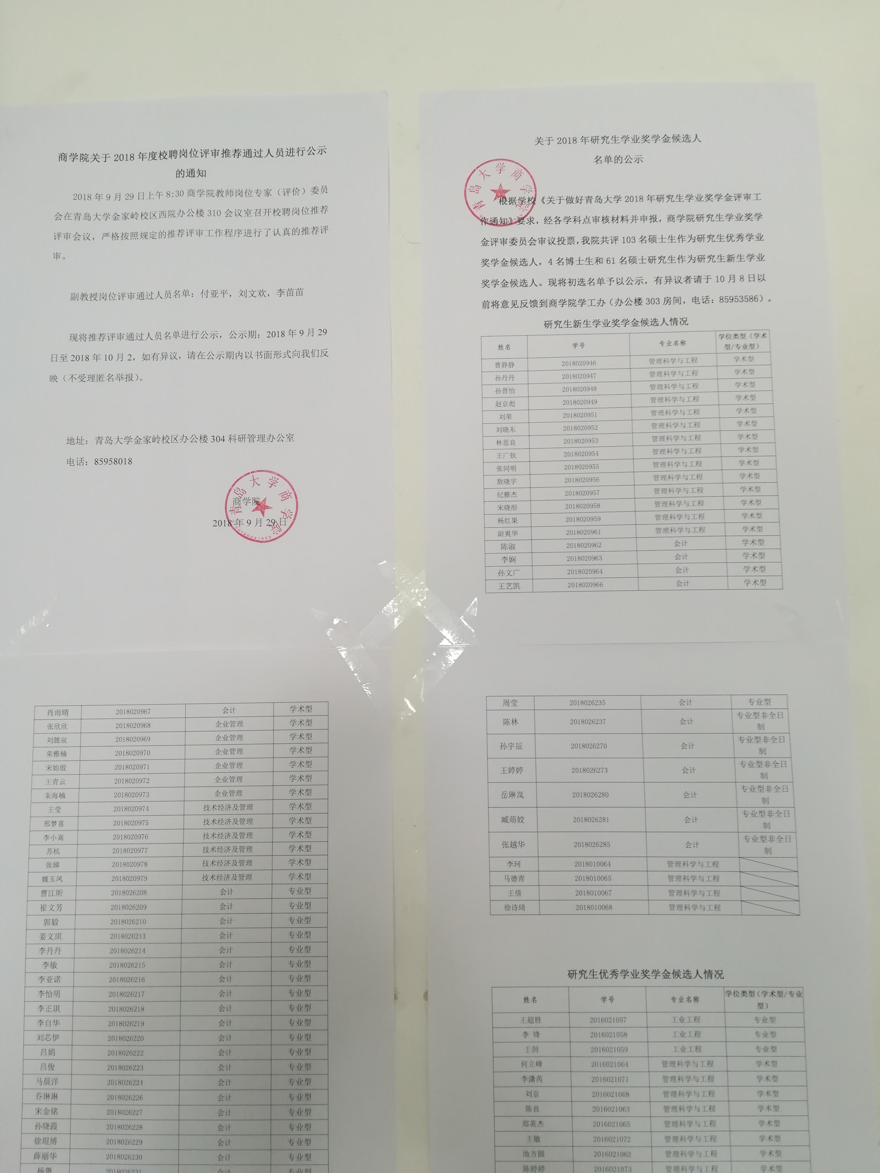 商学院2018年研究生学业奖学金公示
