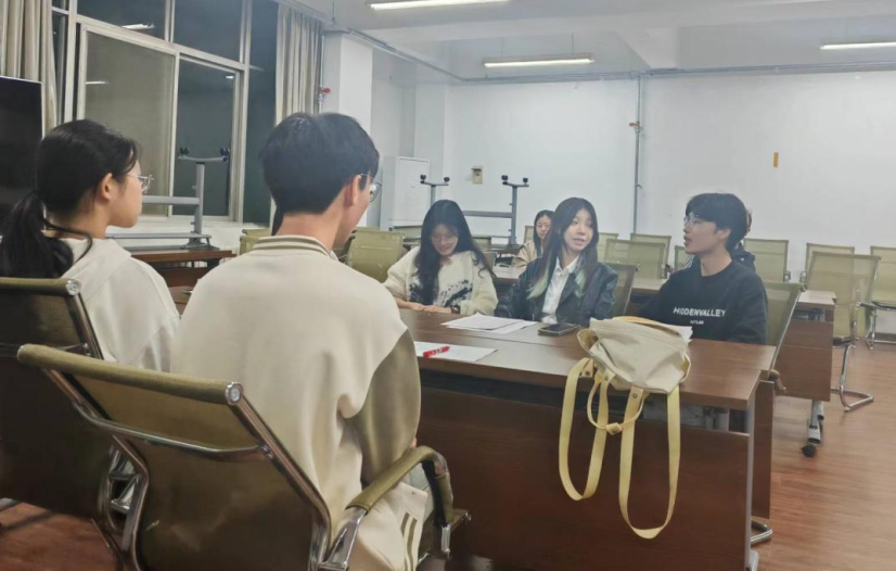 每4个人为一组,面试候选的同学们在会议室外积极为面试做好准备。他们手持自己的面试材料,眼中充满了期待与紧张,互相鼓励,准备迎接挑战。