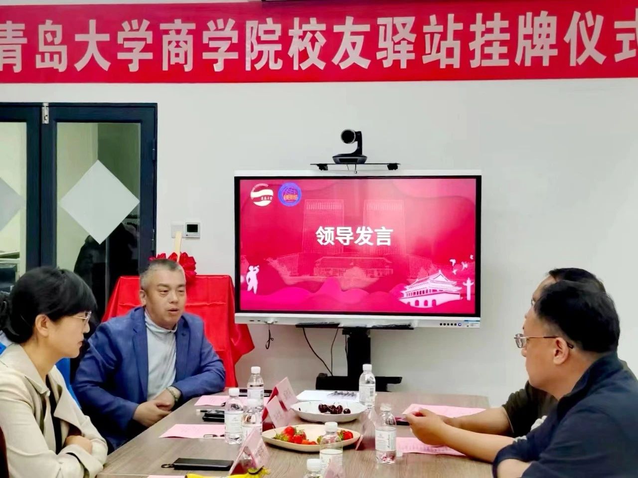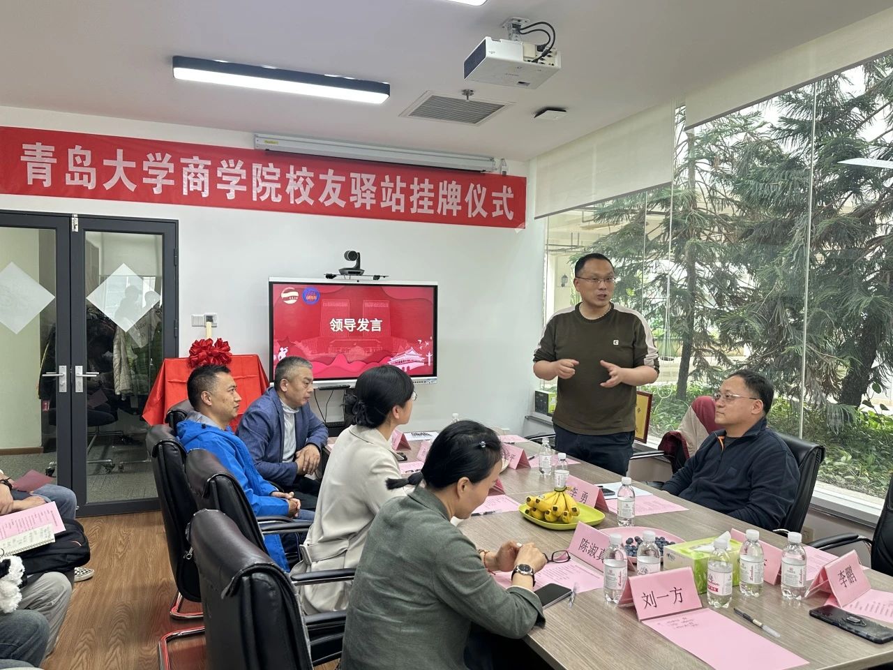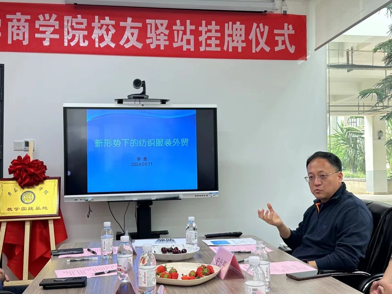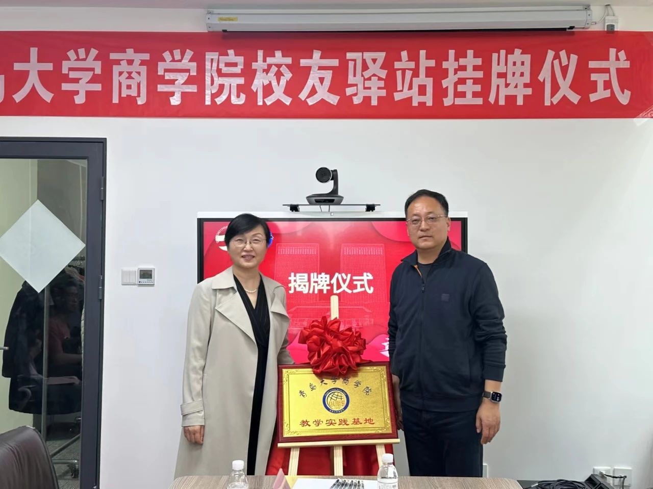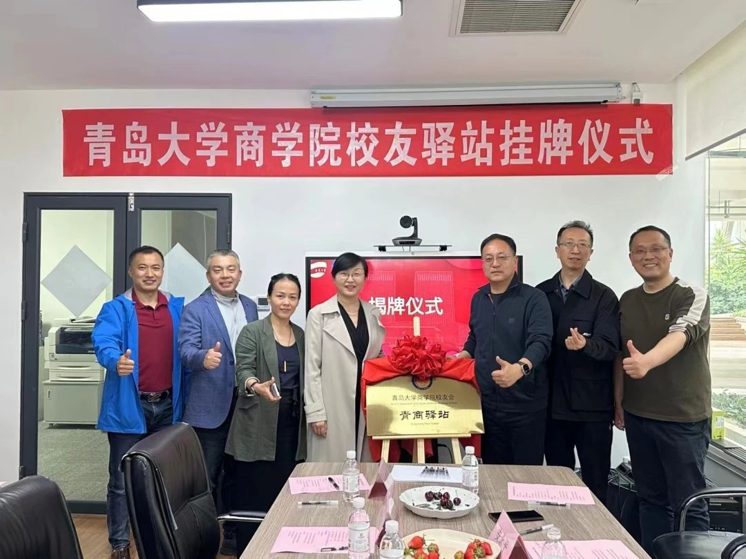 2024年5月11日下午,今年会官方网站与青岛百安贸服装有限公司校友驿站揭牌仪式暨教学基地挂牌仪式在青岛百安贸服装有限公司举行。青岛金沃物流有限公司总经理(商学院校友会执行会长)安北平、青岛百安贸服装有限公司总经理(商学院校友会副会长)李勇、沃资本合伙人邰桂礼、青岛萨么餐饮管理有限公司总经理吕新杰、青岛格外书店创始人陈淑真、塞拉尼斯(中国)投资有限公司大中国区地毯销售总监孙作柏出席揭牌仪式。商学院党委副书记尼梅颉、学工办主任李鹏及辅导员刘一方带领部分2024届毕业生参加。