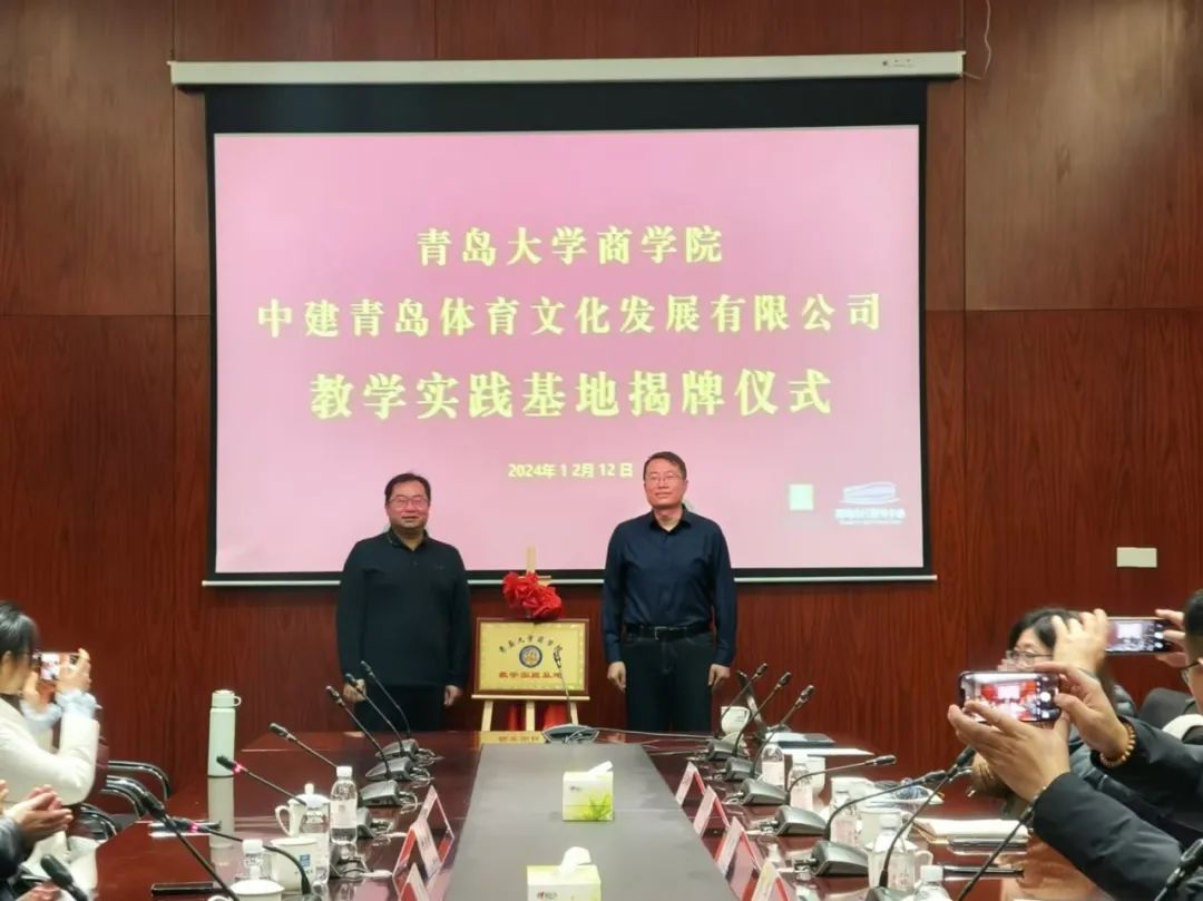 座谈会上,马骋、高龙分别代表今年会官方网站和中建青投为商学院教育实践基地揭牌。这一合作举措为商学院学生实践就业提供了更广阔的平台,双方均对本次合作给予了充分肯定。