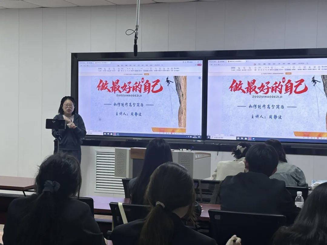 在随后的答疑环节,同学们纷纷抛出心中的疑惑。面对性格方面面试问题的困惑,周老师结合性格测试理论,指导同学们如何精准剖析自我性格,挖掘性格优势,并巧妙转化为求职亮点。针对简历内容优化的问题,周老师分享了量化成果、故事化表达等技巧,建议同学们在内容取舍上遵循“突出重点、契合岗位”的原则,同时通过差异化构建竞争优势,让自己在求职大军中独具魅力。