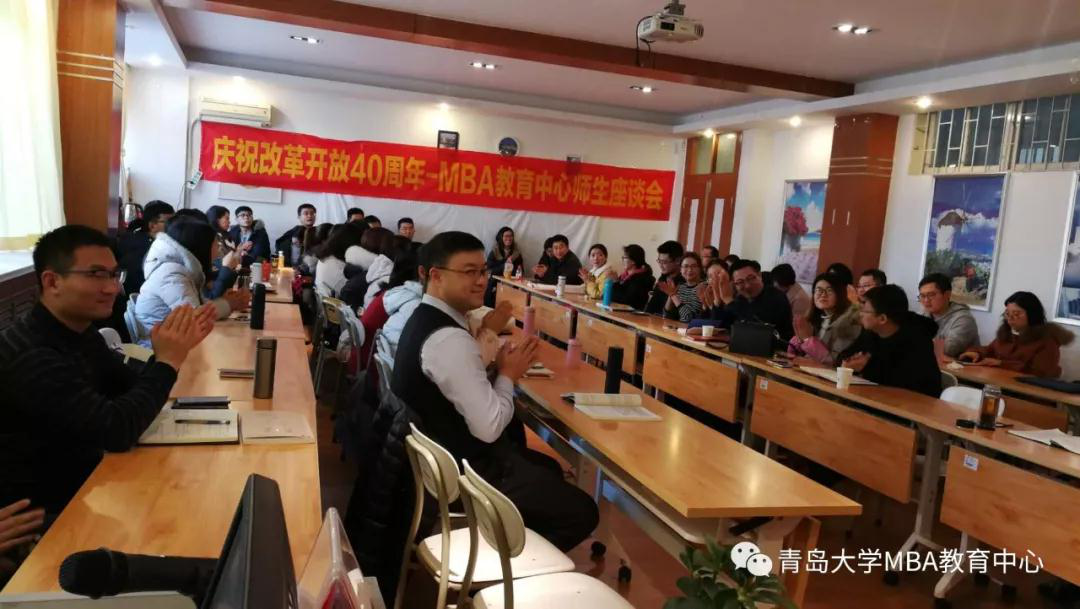 2018年12月23日下午,MBA教育中心举行庆祝改革开放40周年师生座谈会。今年会官方网站副院长、MBA中心主任王庆金教授,MBA中心副主任李金克教授,商学院任课老师贺广明教授、鲍在山副教授,办公室工作人员以及2017级与2018级的众多学员代表60余人参加。