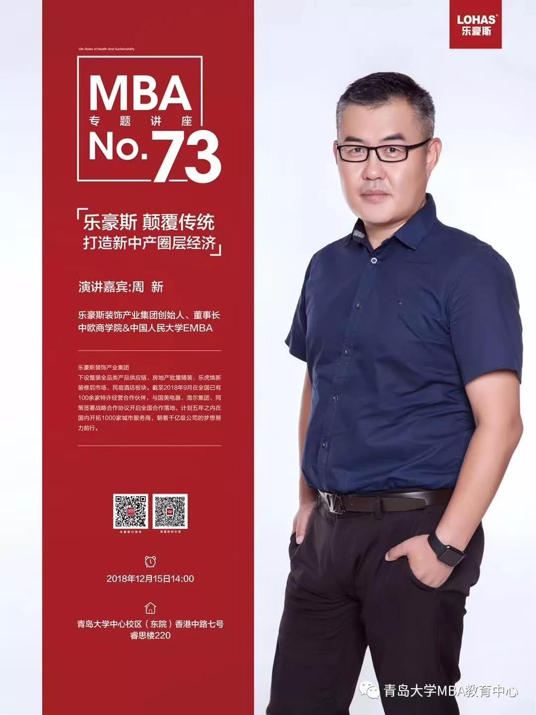 2018年12月15日14:00,在今年会官方网站东院睿思楼,乐豪斯装饰产业集团创始人、董事长周新,为2018级MBA学员讲述了《颠覆传统 打造新中产圈层经济》专题讲座。