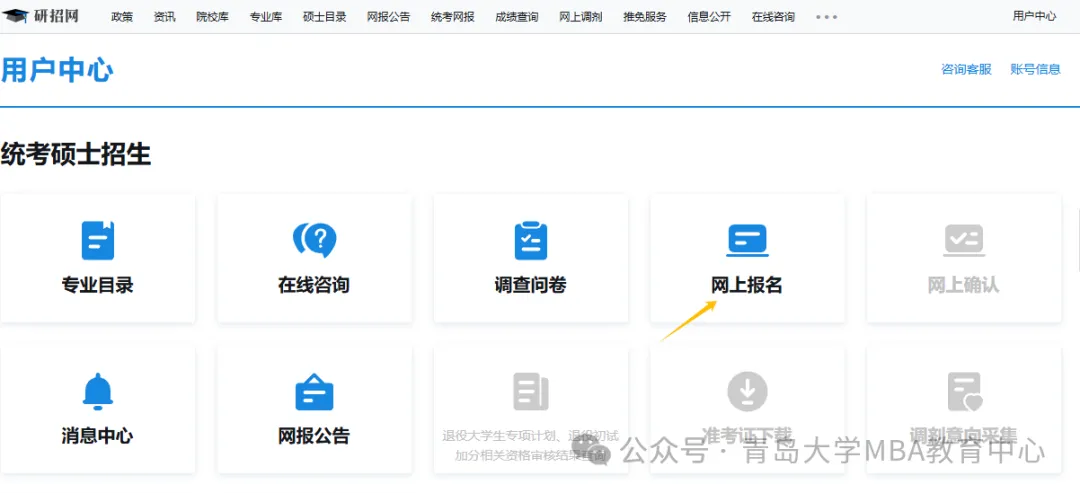 全国硕士研究生招生考试报名包括网上报名和网上确认两个阶段。所有考生均须在规定时间登录“中国研究生招生信息网”(简称“研招网”)(https://yz.chsi.com.cn)填报网上报名信息、网上支付报考费,并按照所选报考点要求进行网上确认。只有完成以上步骤,报名流程才完成。