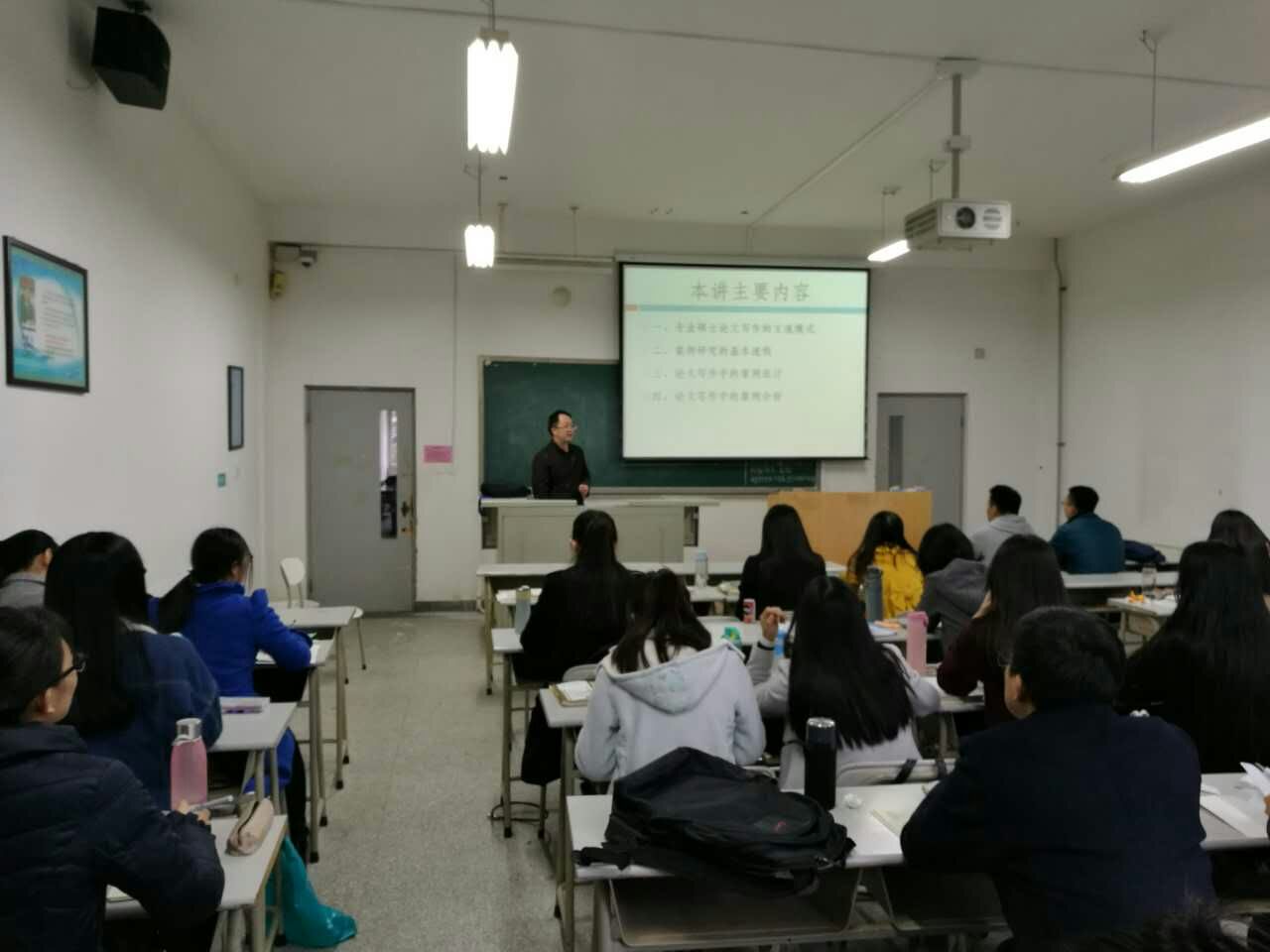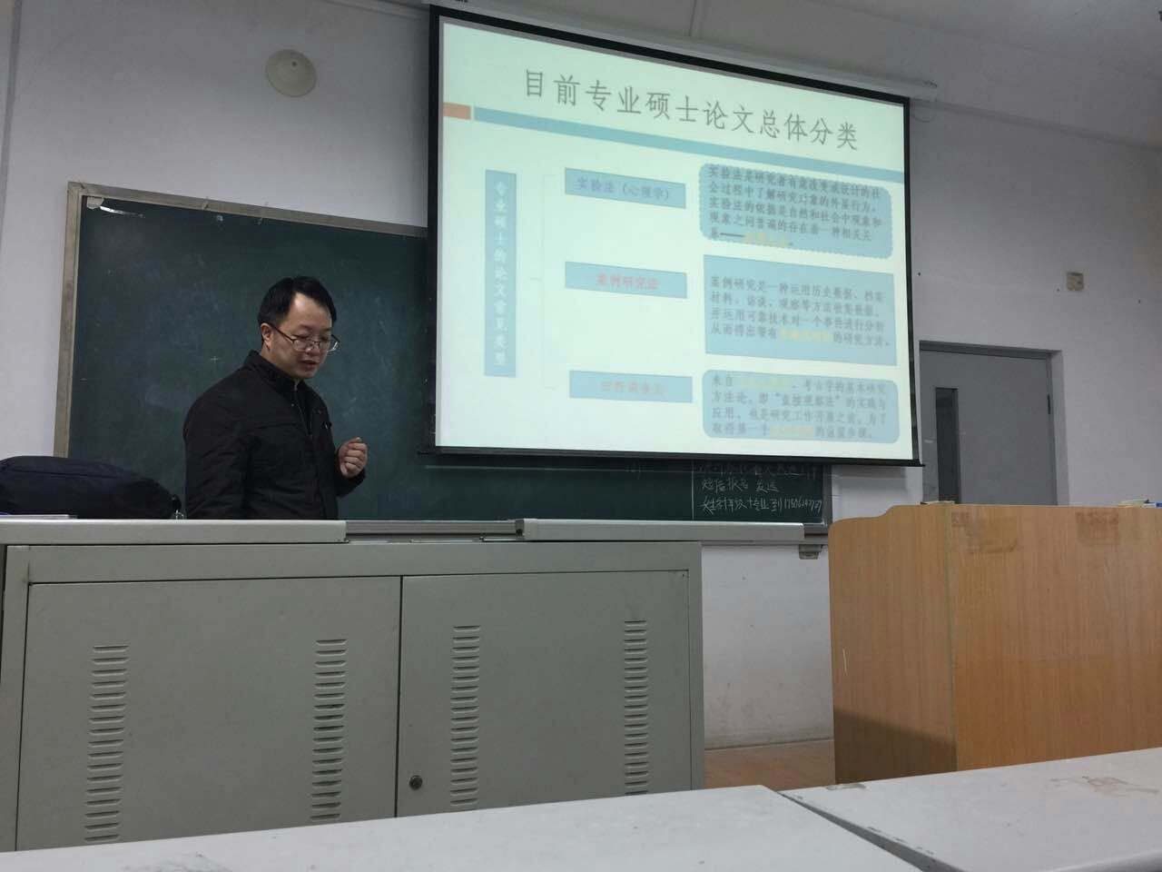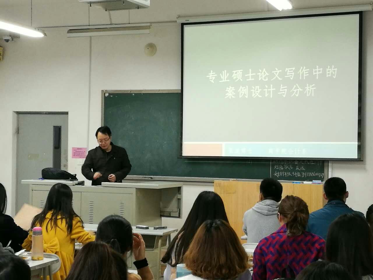 11月16日下午4:00,会计系副主任张波老师在2号教学楼210教室,为专业硕士讲解论文写作中的案例设计与分析,MPAcc班全体成员及MBA等专业的学生到场聆听。
